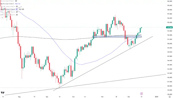 除了利率决定本身,当天14:30的央行行长新闻发布会或许更值得关注。若传递出鹰派信号(明年13月加息的暗示),或能帮助日元获得短暂的喘息空间。