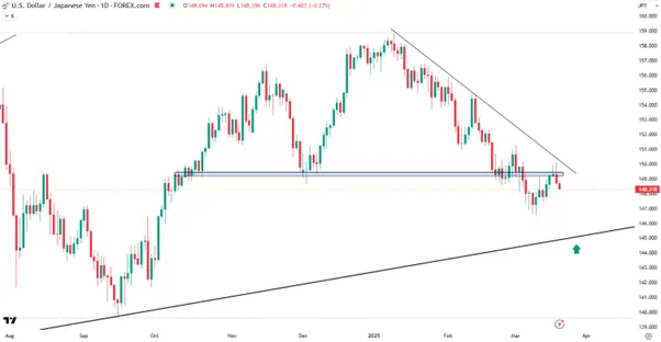 /日在屡次尝试突破149-150区域未果后,或延续下行前往145寻求支撑。
