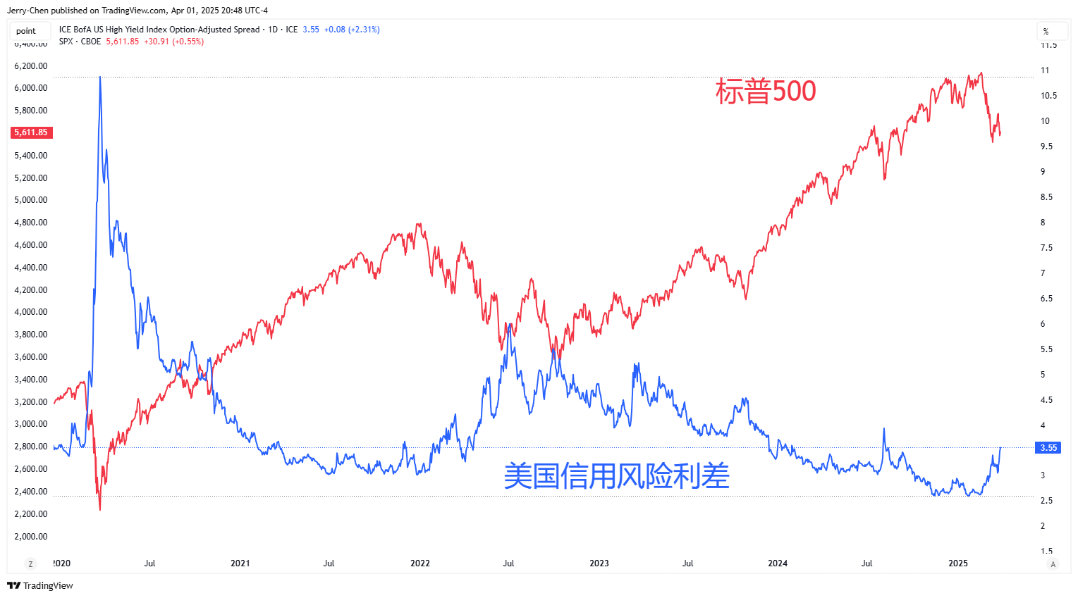 值得注意的是,近期美国信用风险利差出现上升迹象,从历史走势对比来看,这对于美股来说是一个危险的信号。